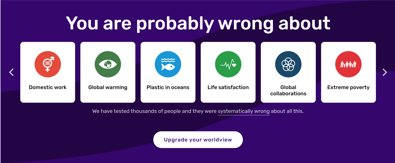 Test your assumptions about the world: https://upgrader.gapminder.org/
